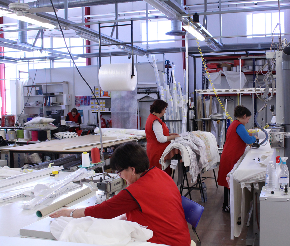 Está compuesta por un equipo de 20 personas que están dedicadas a la CONFECCION DE TEXTILES, tanto para protección personal (MASCARILLAS, BATAS) como Textiles para el Hogar y Hoteles, actualmente dispone de unas instalaciones de 2.000 mts. Cuadrados ubicados en el Polígono Industrial de Puerto Lumbreras, en los cuales dispone de maquinaria adaptada para la confección de todo tipo de Textiles, cumpliendo de manera escrupulosa con las fechas acordadas, todo se confecciona con personal propio altamente cualificado para la confección de textiles.
